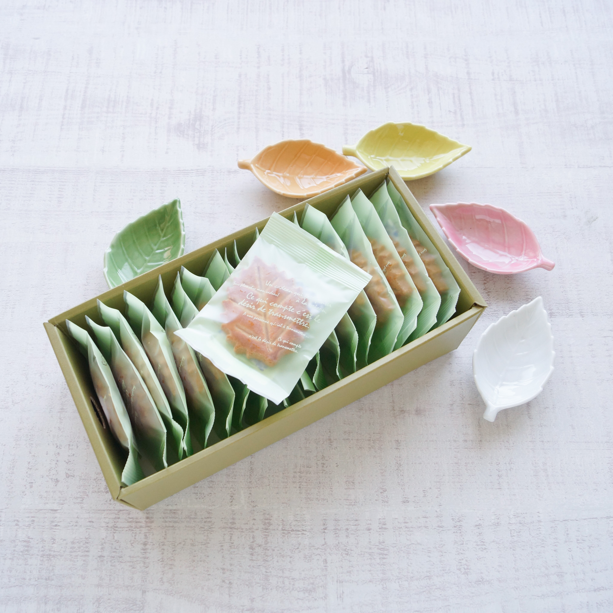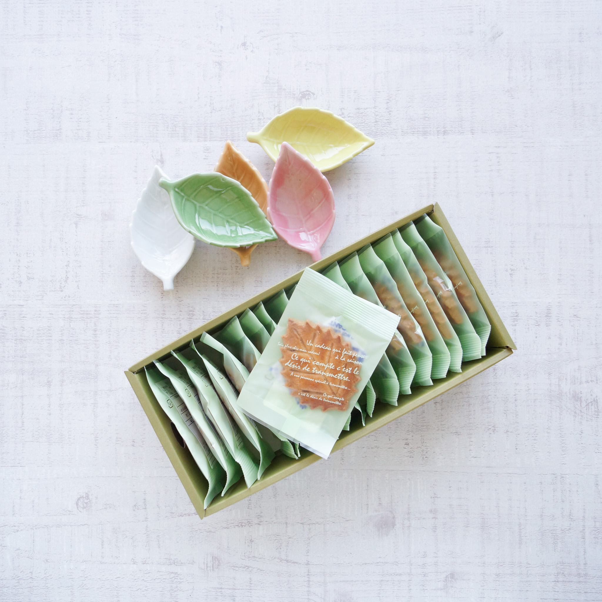 当店1番人気商品。シンプルな材料で作るからこそ、当店の原点は葉っぱサブレにあります。こだわりがたくさん詰まったクッキーです。サクッサクッの食感と「もう1枚。」っと続けて食べたくなる軽い口当たりが特徴です。まずは最初に試してもらいたい、シンプルで奥行のある深い味わいのクッキーです。