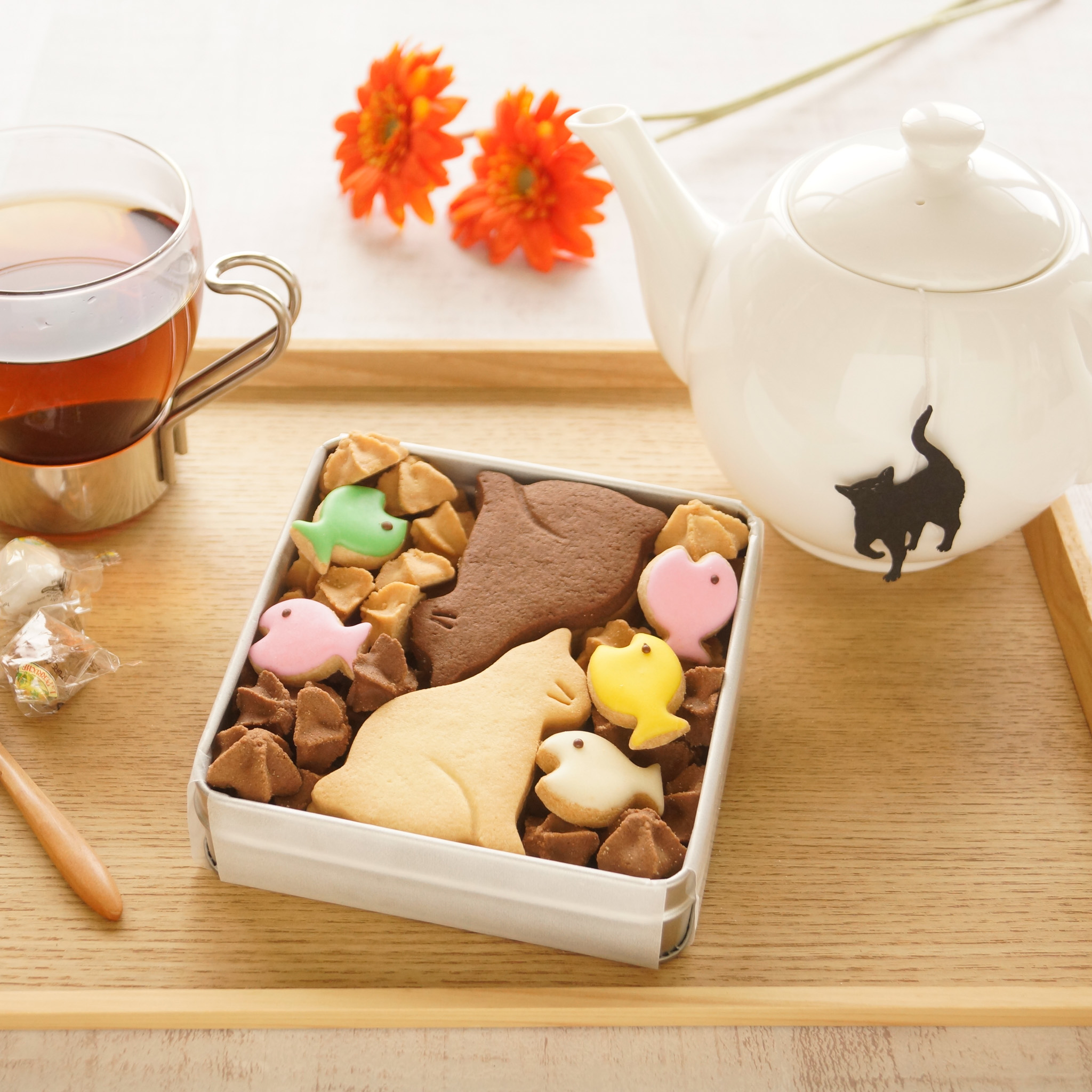 ちょこんと座った白と黒のネコ。くろネコさん、しろネコさんのクッキーがぎっしり計8枚!かわいいサカナのアイシングクッキー入り。ネコ好きさんへのお礼やプレゼントにいかがですか。